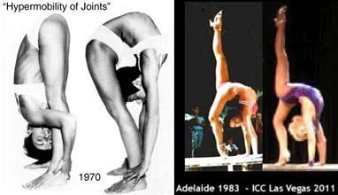 develop clear signs of Ehlers-Danlos Syndrome later in life (in Ehlers-Danlos Syndrome, hypermobility tends to dominate early in life, while other symptoms tend to dominate later in life). This suggests that in such individuals extreme flexibility and Ehlers-Danlos syndrome are related.