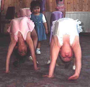 Gavaa's toddler joins in with interest - in fact, she couldn't be kept out of it! She had to join in everything, and kept climbing up onto the contortion table. Clearly, she is a born performer.