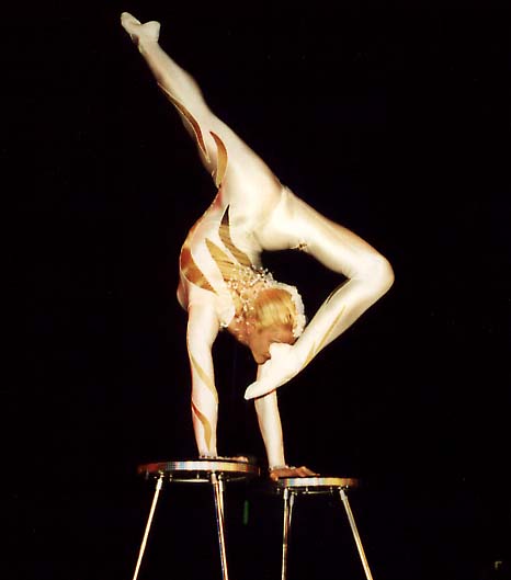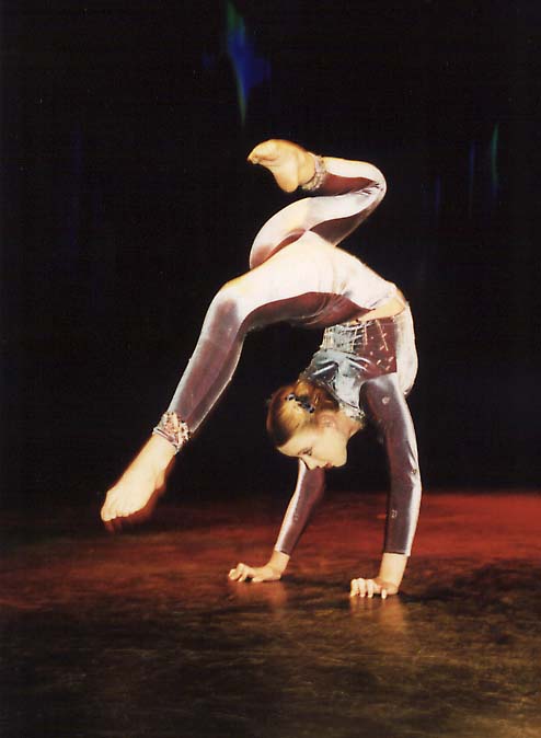 able to twist her tense, lithe body round and round from backbends to