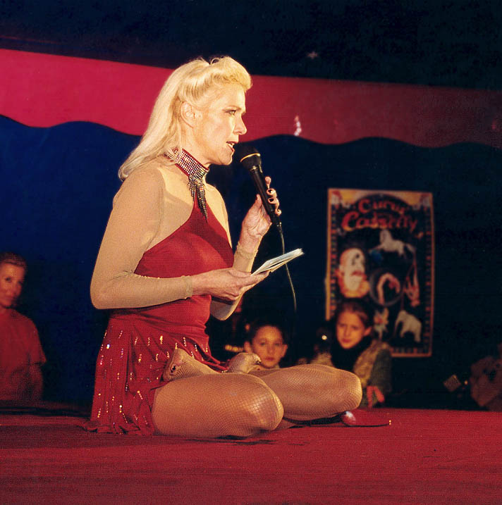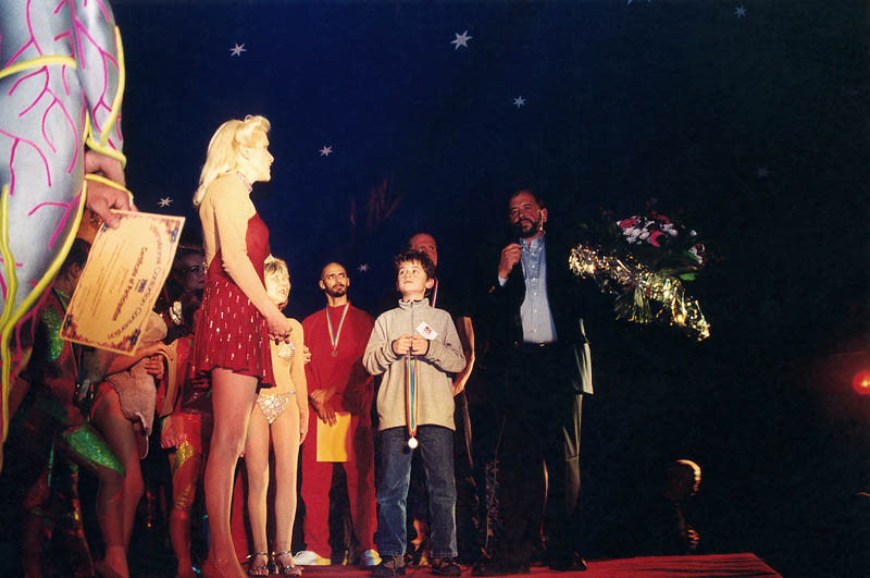here giving a speech of thanks, and with a bouquet of flowers for Ska.