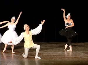 A joke version of Act II of Swan Lake with a 60+ year-old Prince Siegried having a balding head of grey hair, a beard, and glasses, it couldn't be anything else, could it?