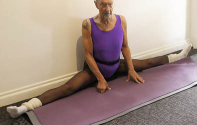 The wheel gives an incredible feeling of opening out in the torso. It is my favourite backbend, because it gives you complete control over where in the back the stretch is concentrated. If you push with the feet, you get an exhilarating feeling of the chest opening wide. It also looks (just a little bit) weird. Next: head resting on soles of feet and diamond. Then pigeon, scorpion, pigeon in a split (ring split), scorpion again, and crow. Finally: side splits - nearly, but not quite, there.